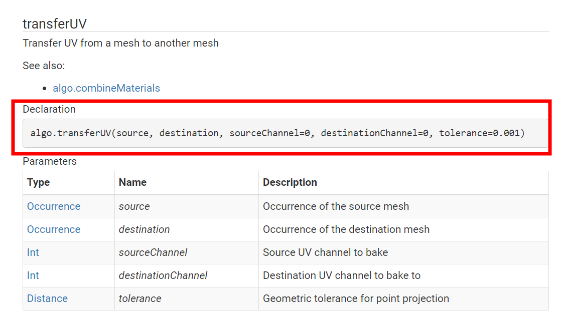이 후 원래 오브젝트가 갖고 있는 UV 맵을 복사 및 붙여넣기 해야 합니다.Pixyz Studio 2022의 경우 bakeUV를 현재 베타인 Pixyz Studio 2024의 경우 transferUV API를 사용할 수 있습니다. 받는 인자는 같습니다.