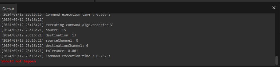 Pixyz Studio 2024의 경우 다음과 같이 transferUV를 사용하면 Should not happen이 발생하였습니다.